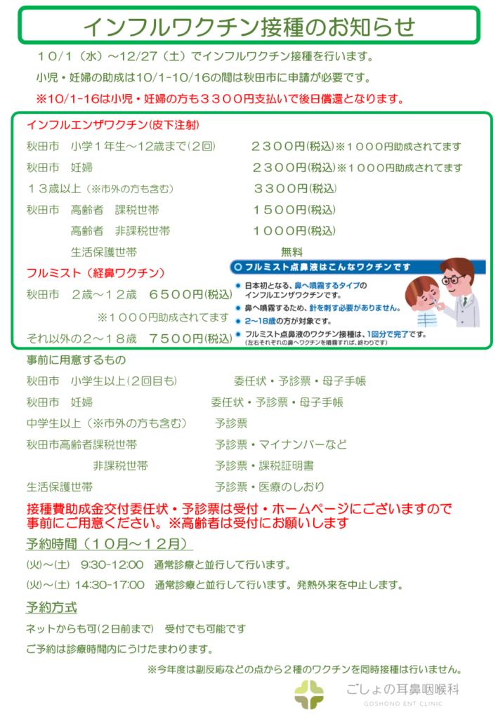 フルミスト予診票はこちら ※3ページ目を記載してお持ちください